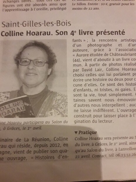 « J’ai toujours aimé écrire. D’ailleurs, dans les différents métiers que j’ai exercés, et encore aujourd’hui, je prends la plume ou le stylo. J’écris beaucoup mais je ne suis éditée que depuis dix ans », détaille Colline Hoarau. Elle sera en dédicaces à la bibliothèque de Plouëc-du-Trieux, samedi, de 10 h à 12 h.