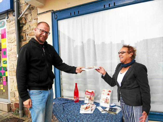 Samedi, Le vent et la pluie n’ont pas épargné Colline Hoarau, venue dédicacer son cinquième roman. Celle-ci avait posé son stand devant la Maison de la presse, sans possibilité de s’abriter à l’intérieur, covid oblige. Mais c’est avec humour et un beau sourire que l’auteure a rencontré ses lecteurs fidèles, venus découvrir ce roman d’anticipation, dont l’action se situe en 2040, entre sa Bretagne d’adoption et l’île de la Réunion où elle est née. Son prochain ouvrage sera un livre de littérature enfantine, et portera sur les « doudous ».